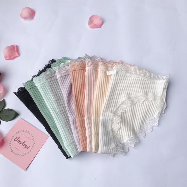 - Chất liệu 100% COTTON - Mềm mỏng thoáng khí, đường ren gợi cảm rất mềm không gây hằn, rát lên da. - Thiết kế ôm sát lấy vòng 3, giúp định hình và tạo