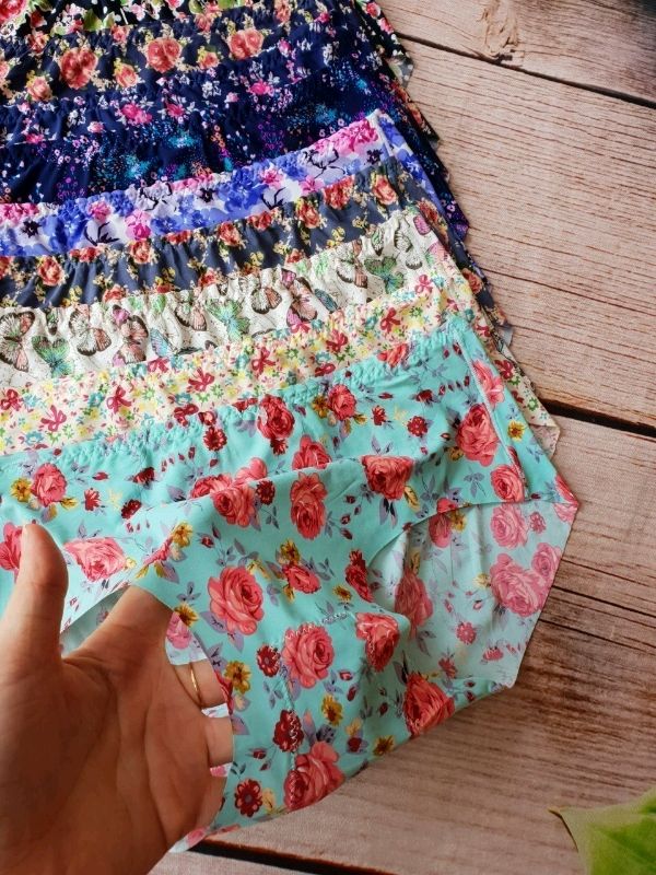Chất su lụa cực mướt, cực mềm mịn và mát lạnh Dành cho các nàng mông dưới 95cm Màu sắc và hoa văn vô cùng dễ thương, quần không gây in hằn lên da khi