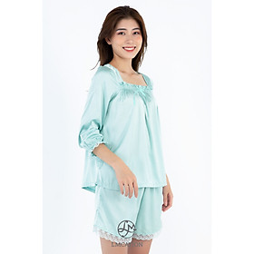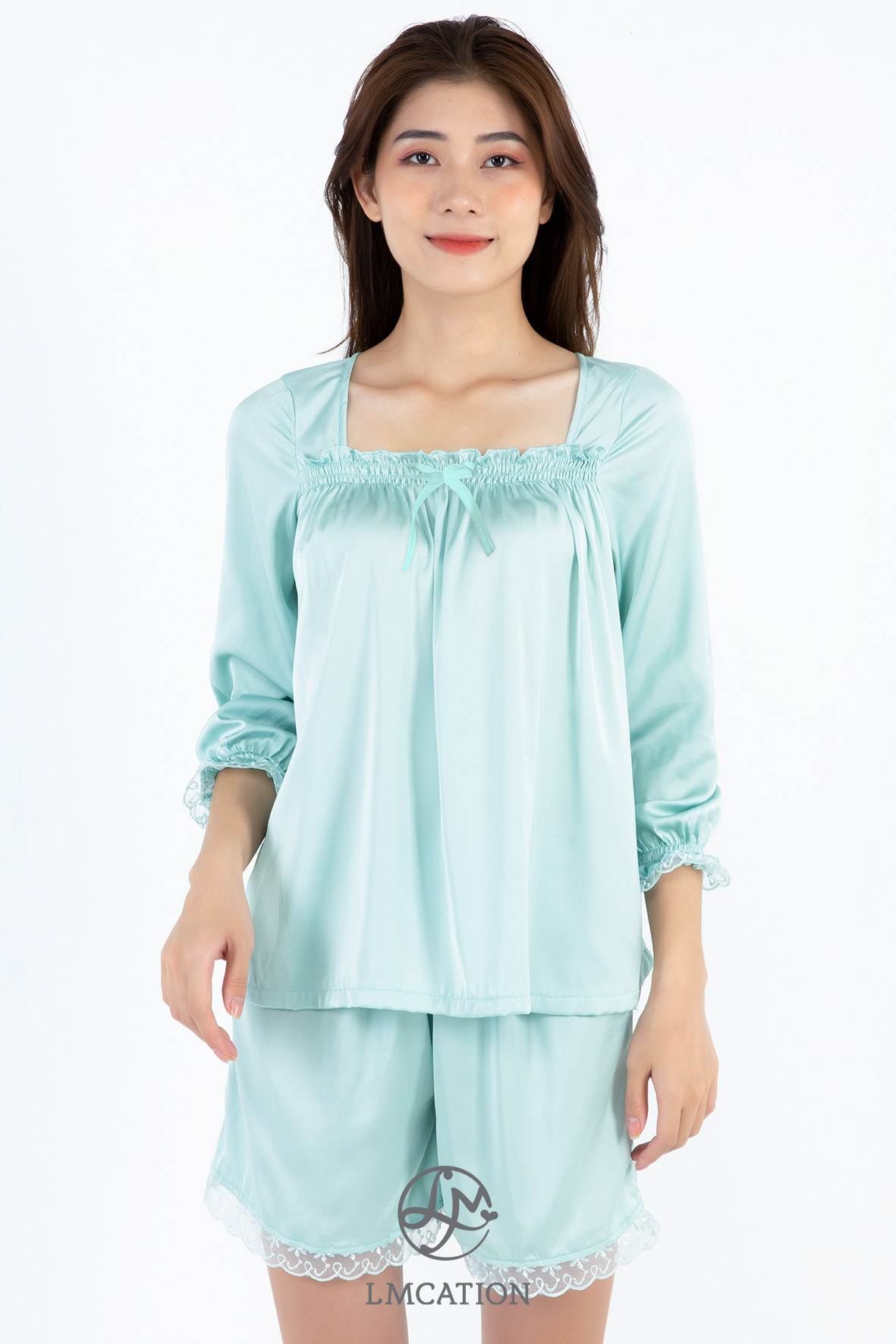 ✨Combo Áo tay lửng phối ren & Quần đùi phối ren LMcation Queen - Màu Bạc Hà