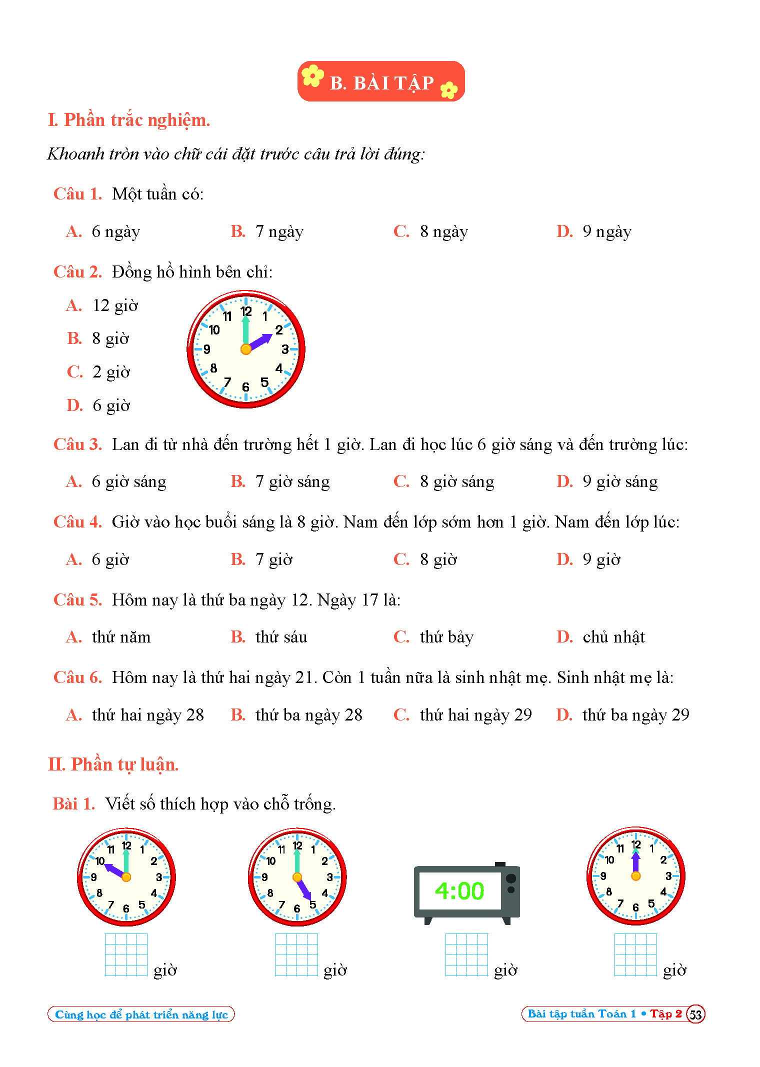- Tổng hợp kiến thức và ôn luyện bài tập trọng tâm theo từng tuần học.