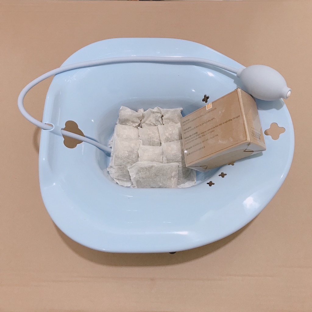 Sản phẩm gồm chậu xông có tay bóp xịt rửa và 1 hộp túi lọc vệ sinh phụ nữ cho mẹ sau sinh: Công dụng: -Lưu thông khí huyết, giảm nhức mỏi, ù