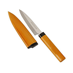 Dao gọt hoa quả cao cấp KAI có nắp đậy cán gỗ nội địa Nhật BảnChất liệu: lưỡi bằng thép không gỉ, tay cầm và nắp bằng gỗKích thước: chiều dài lưỡi dao 10 cm, chiều dài cán dao: 10cmCông dụng: Dao đ...