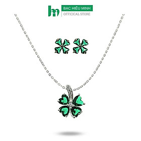 Chất liệu: 30% bạc xi bạch kim Kích thước: Dây chuyền dài 45cm, mặt dây xấp xỉ: 1,45x2,25mm Bông tai xấp xỉ: 1,6x1,4mm Bộ trang sức món hoa nạm đá BHB67 - Chất liệu: 30%