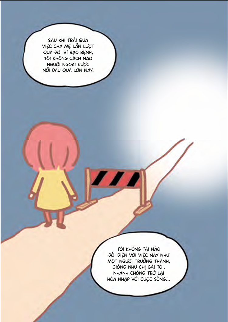 Là con gái út trong gia đình có bốn anh em, Miew trải qua mười hai năm giữ vai trò người chăm sóc, phải từng bước, từng ngày chứng kiến cha mẹ chầm chậm rời xa. Trải nghiệm đau thương ấy đã khiến Miew giam mình trong bóng tối của nỗi đau, cho đến một ngày, cô nhận ra mình có thể kể lại câu chuyện qua những nét vẽ. Điều này giúp cô một lần nữa được ở bên cha mẹ, và cũng để nói với chúng ta, những người không sớm thì muộn cũng sẽ bước qua chặng đường của cô, rằng chúng ta không đơn độc trên hành trình này.