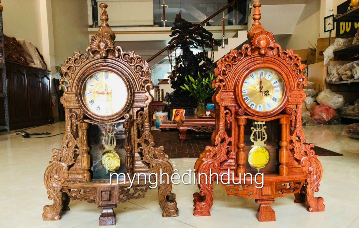 _ Bộ Đồng hồ được chạm khắc gọt tỉa vô cùng ti mỉ tinh xảo kỳ công. Đi hầu hết tất mọi chi tiết góc ngách nội dung hoa văn của Đồ hồ đều được gọt tỉa chỉnh sửa sắc nét hoàn toàn bằng tay thủ cô