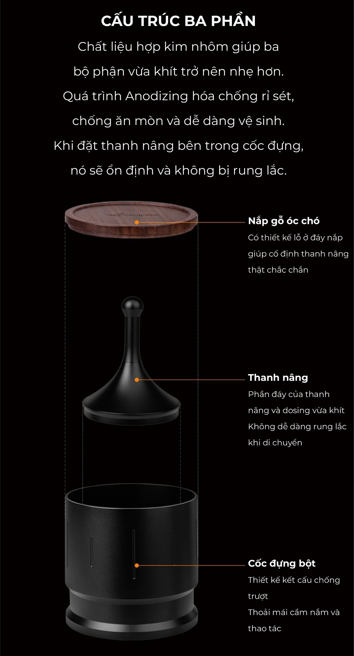 ️ Điều chỉnh độ sâu vô cấp, linh hoạt cho từng loại cà phê.