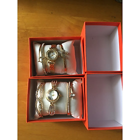 _Combo hộp 3 món đeo tay xinh xắn phong cách thanh lịch thời trang sang trọng quý phái cho nữ -Combo hộp đồng hồ 3 món đeo tay xinh xắn , mặt tròn màu trơn