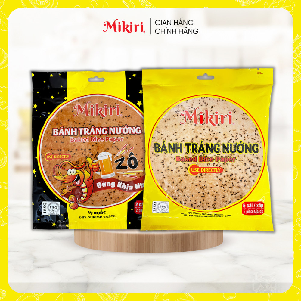 - Bánh tráng nướng Tây Ninh Mikiri 50g (Vị ruốc) Bánh tráng nướng vị ruốc Mikiri là sự hòa quyện giữa bột gạo, bột năng và ruốc, mang đến hương vị đậm thơm, mặn mà. Sản xuất trên dây chuyền hiện đại, không lẫn tạp chất, đảm bảo an toàn cho sức khỏe người tiêu dùng. Với quy cách 2 lá/ xấp, được đóng gói kỹ càng trong bao bì nhôm, giữ trọn độ giòn ngon và hương vị đặc trưng. Chỉ cần mở bao bì là có thể thưởng thức ngay, dùng ăn vặt hoặc kết hợp cùng các món gỏi, nộm,….