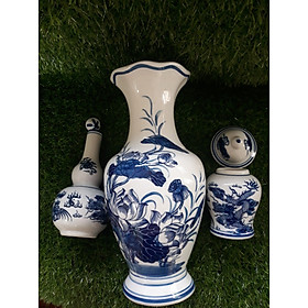 ✨Combo lọ hoa hũ muối và hồ lô thờ cúng sứ Bát tràng men lam