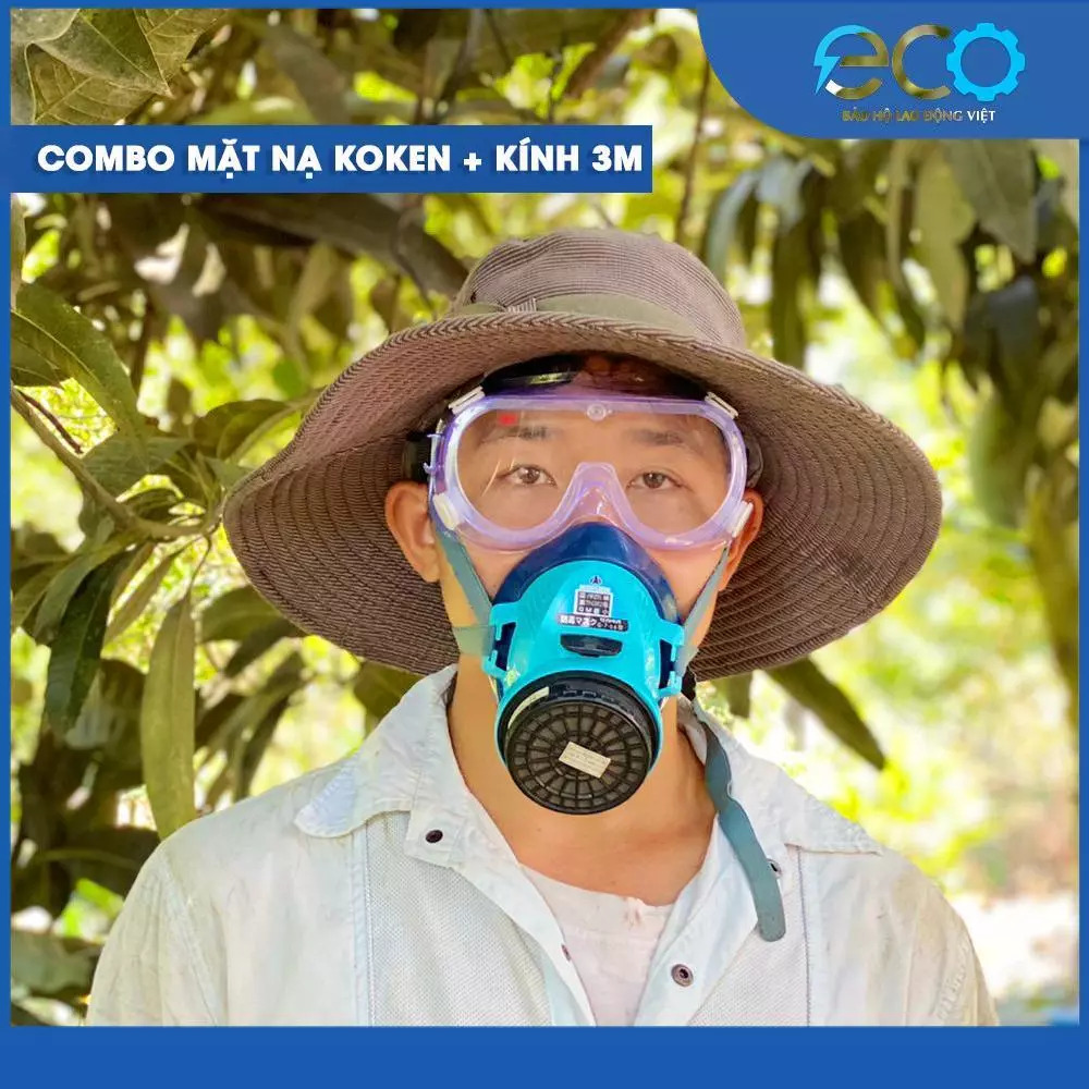 Combo mặt nạ phòng độc Koken G7 Nhật Bản kèm kính chống hóa chất 3M 1621AF là giải pháp bảo hộ hiệu quả cho người lao động tiếp xúc với hóa chất, thuốc trừ sâu