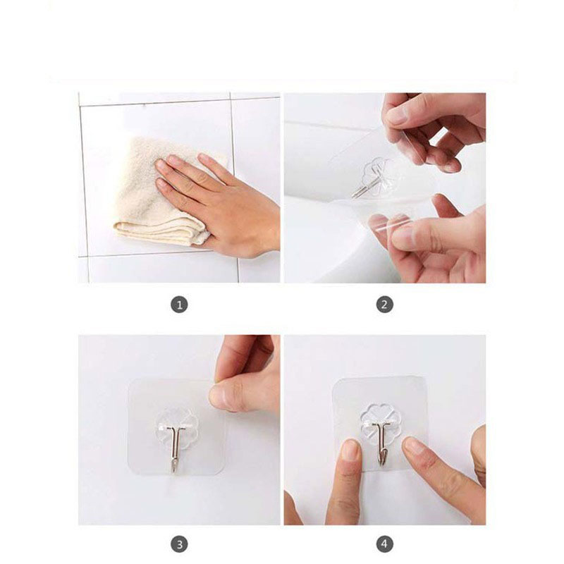 - Chỉ cần bóc lớp nilon đằng sau móc và lau sạch nơi cần dán, sau đó dán lên mặt phẳng nhẵn