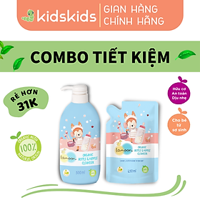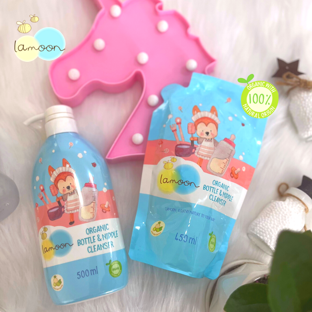 ✨COMBO Nước rửa bình sữa Organic an toàn cho bé Lamoon dạng Bình 500ml + Túi refill 450ml
