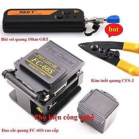 Giới thiệu sản phẩm: Bộ combo quang gồm Dao cắt sợi quang FC-60S+Bút soi sợi quang 10km GRT+Kìm tuốt quang CFS-3