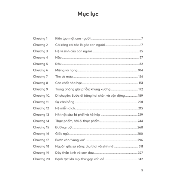Cuốn sách được chia làm 23 chương mỗi chương của cuốn sách đều cung cấp một cái nhìn chi tiết và dễ hiểu về các bộ phận và chức năng của cơ thể, từ góc độ sinh học đến y học, với lối viết hài hước và giàu thông tin. Bên cạnh đó, cuốn sách cũng đi sâu vào các bệnh lý phổ biến, như ung thư, bệnh tim mạch, và tiến trình lão hóa, giúp độc giả hiểu rõ hơn về các mối đe dọa sức khỏe mà cơ thể phải đối mặt.