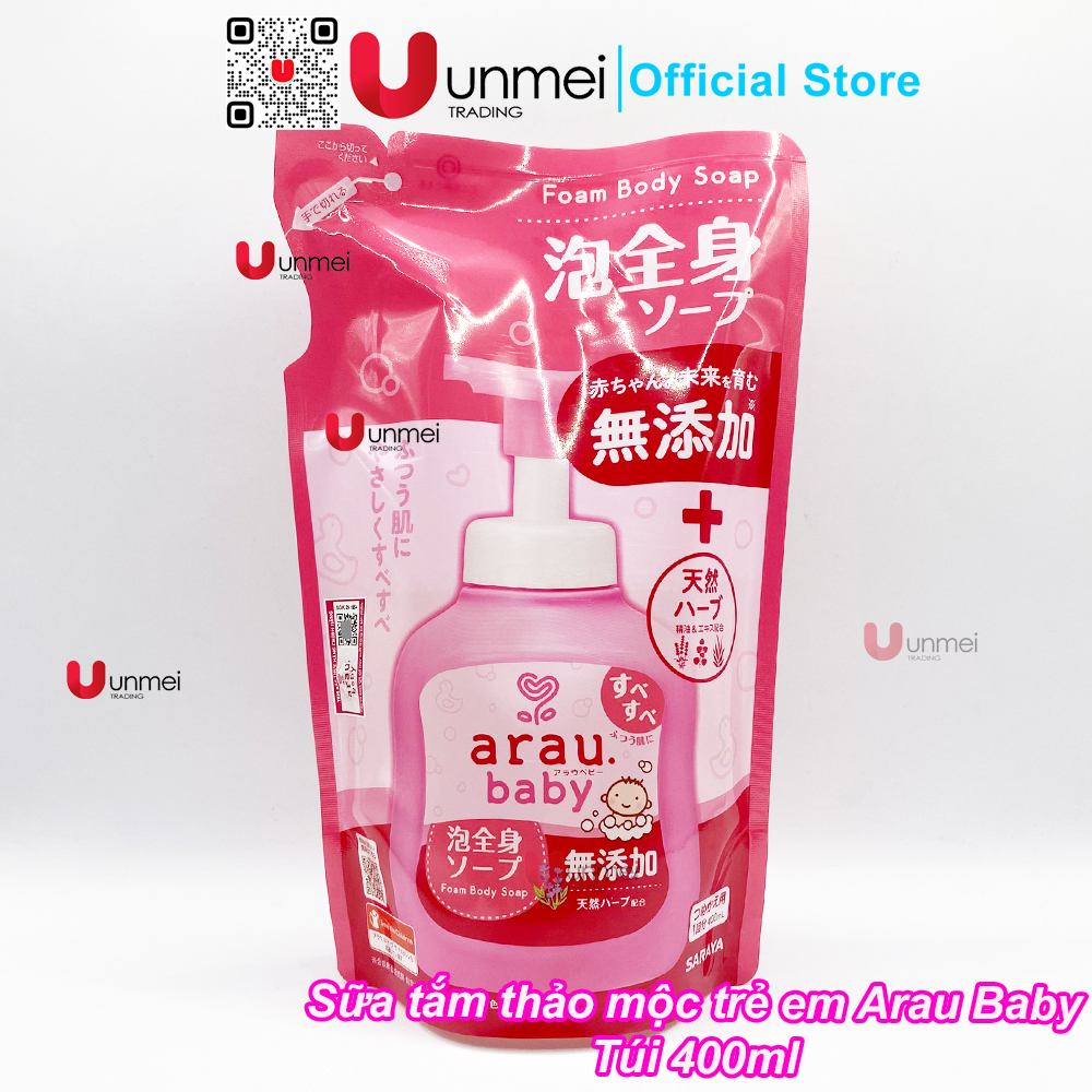- Sữa tắm Arau Baby của Nhật dành cho bé từ sơ sinh với chiết xuất 100% từ thảo mộc tự nhiên mang lại cho bé những giây phút thư giãn khi tắm và bảo vệ làn da mỏng manh của trẻ nhỏ. Giúp bé có một làn da mềm mại và sạch khuẩn.