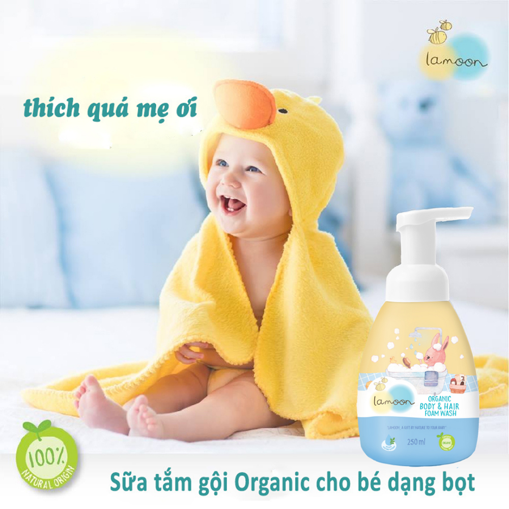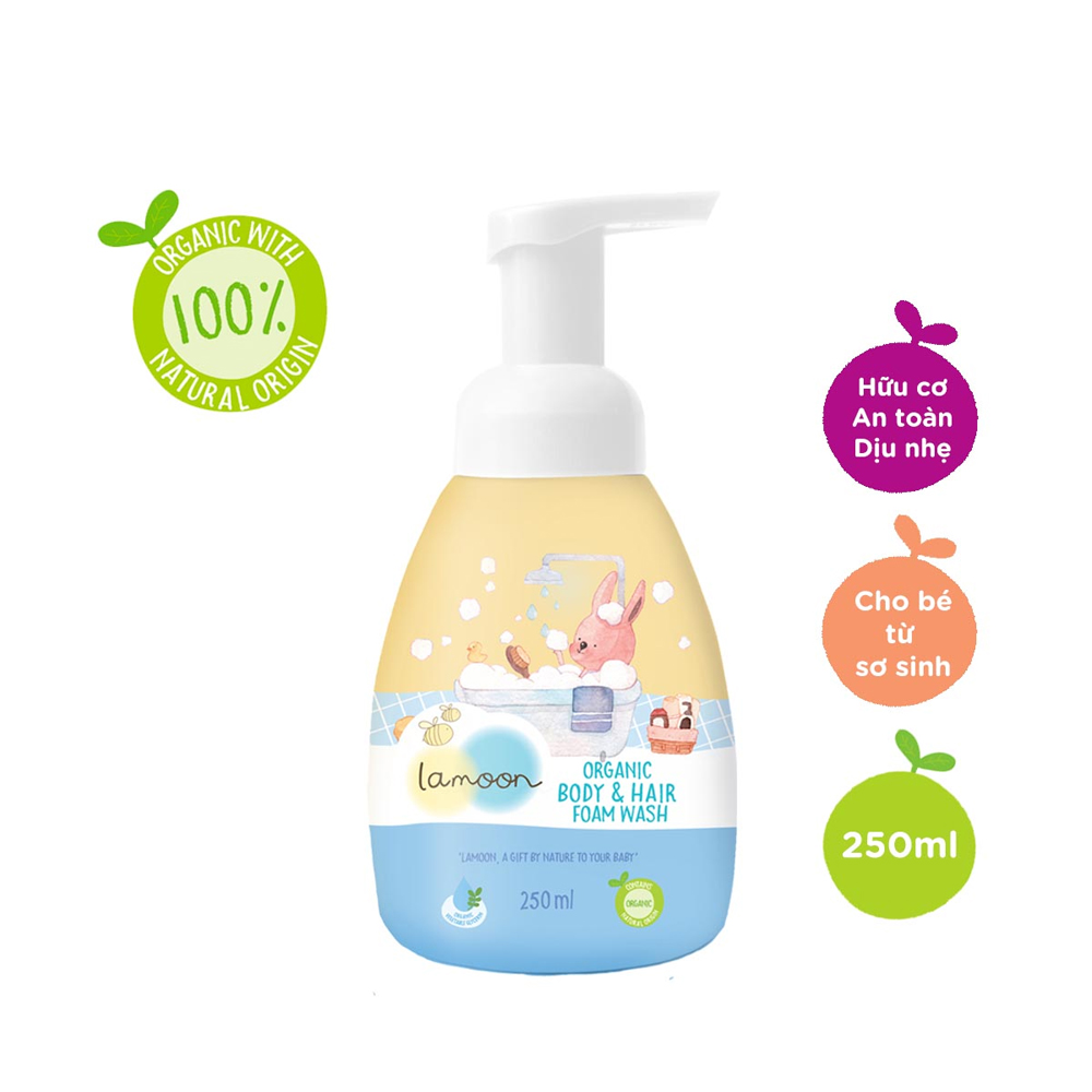 Bé yêu của bạn vốn có làn da non nớt và hệ miễn dịch còn chưa hoàn thiện, vô cùng nhạy cảm, rất dễ bị dị ứng với các chất hóa học có trong những sản phẩm tắm gội hóa tổng hợp dành cho bé trên thị trường. Với sữa tắm gội hữu cơ (organic) cho bé dạng bọt của Lamoon hoàn hảo cho da bé, ba mẹ không cần phải lo lắng khi sử dụng. Sản phẩm với 100% chiết xuất tự nhiên từ thực vật, không chỉ có tác dụng làm sạch da và tóc mà còn có công dụng dưỡng và tăng sức đề kháng cho da nhờ vào các vitamin, dưỡng chất từ tự nhiên, đảm bảo cho bé làn da và mái tóc khỏe mạnh và mềm mại.