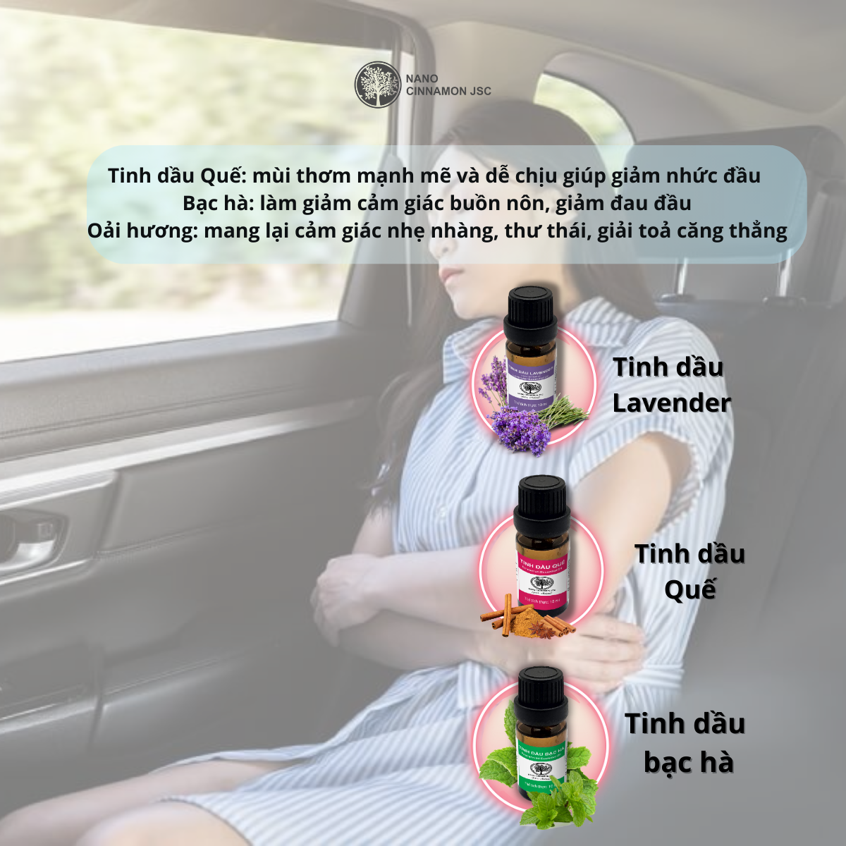 Combo Tinh Dầu Giảm Say Tàu Xe Nano Cinnamon - Quế, Bạc Hà, Lavender, 30ml