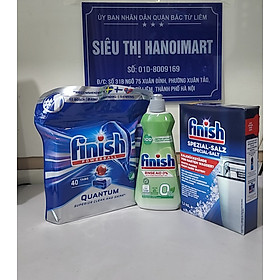 Combo: Viên rửa bát Finish All in one 100 viên +Dung dịch Nước làm bóng finish 750ml +Muối rửa bát finish 1.5kg cho Máy rửa bát chén là bộ 3 sản phẩm đầy đủ chức
