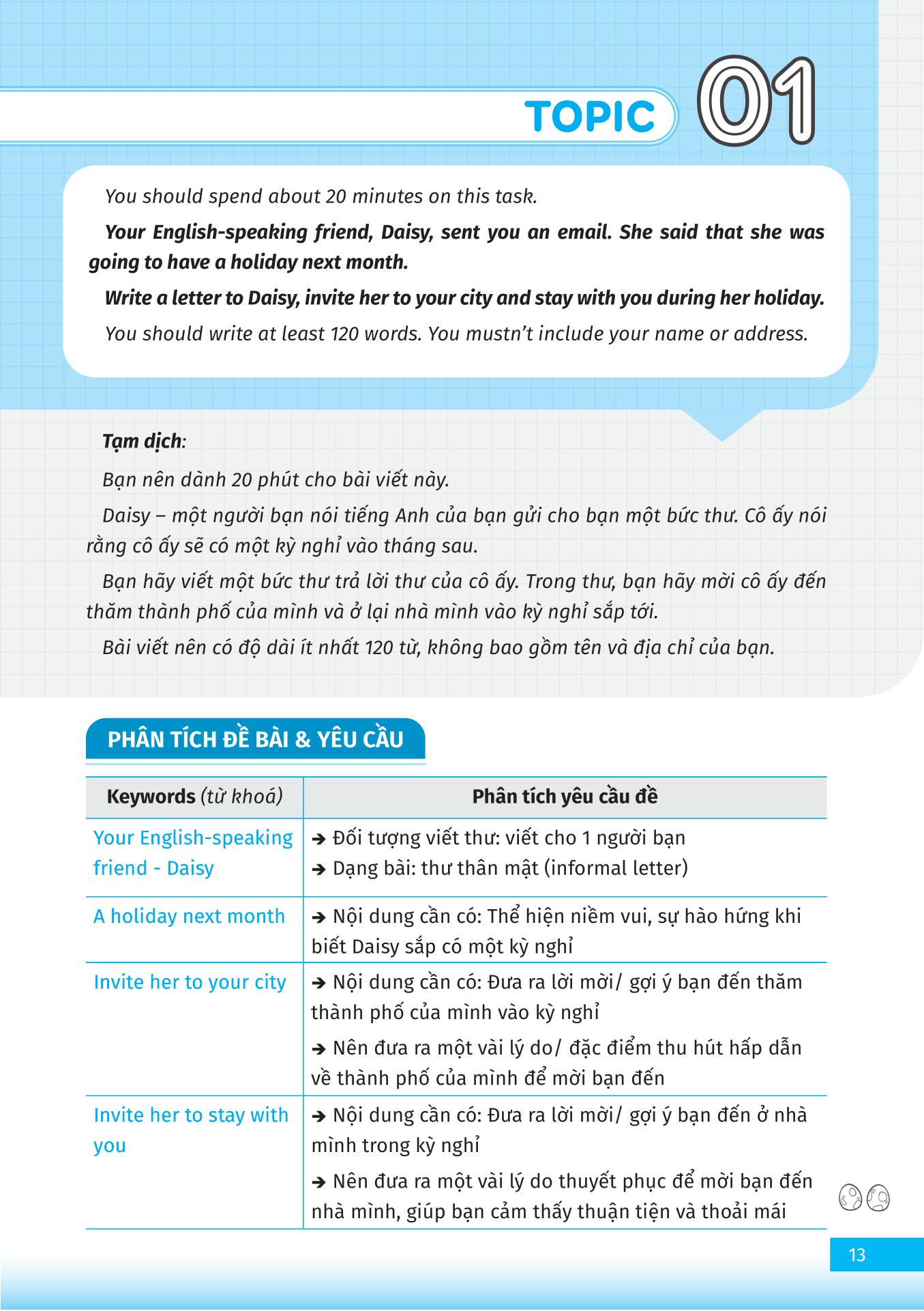 Task 1: Viết tương tác – viết một lá thư hoặc email có độ dài khoảng 120 từ trong thời gian 20 phút.