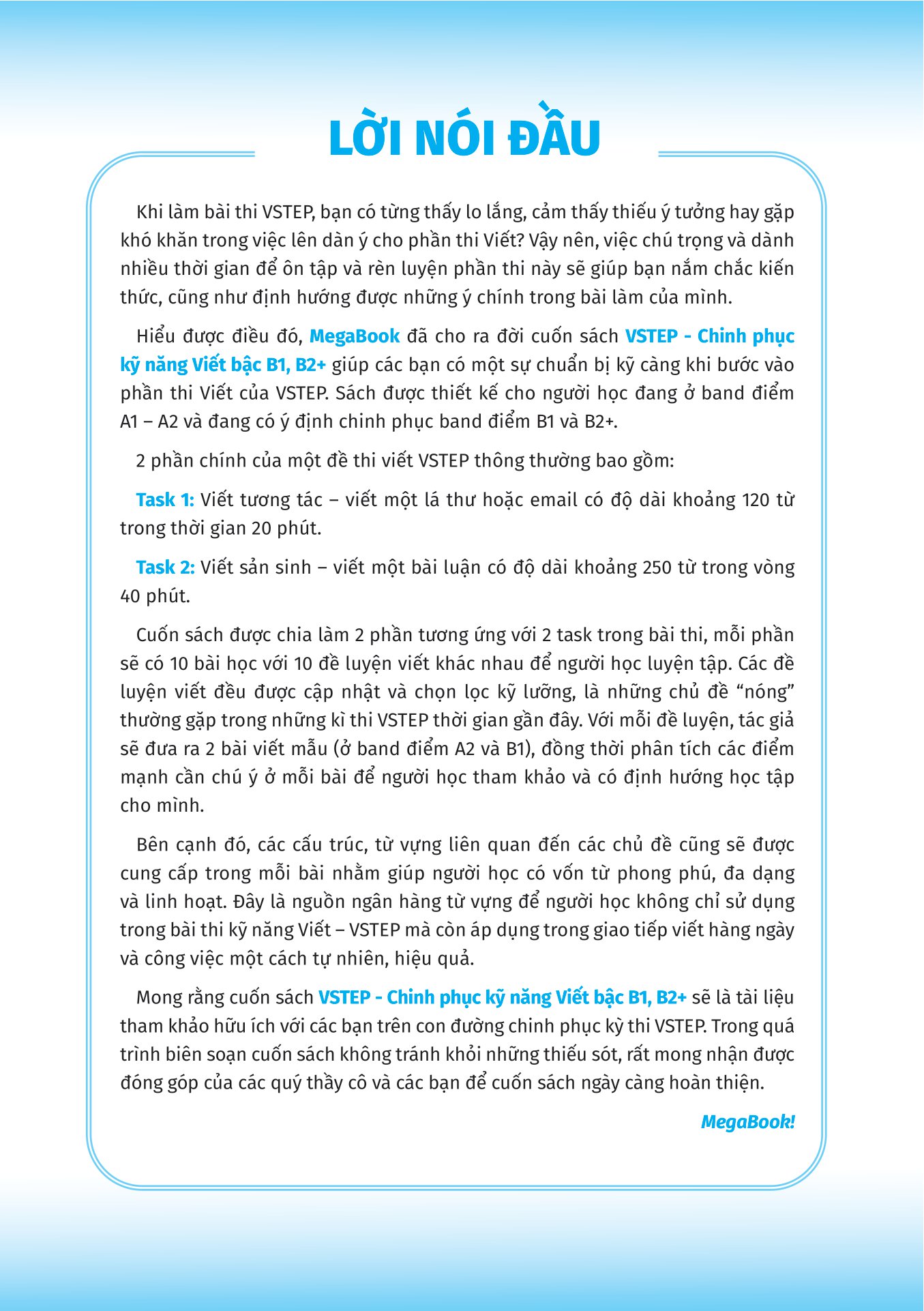 Cuốn sách được chia thành 10 bài học, mỗi bài học tập trung vào 1 chủ đề người học thường gặp trong kì thi VSTEP. Trong đó, mỗi chủ đề được chia thành 3 phần:
