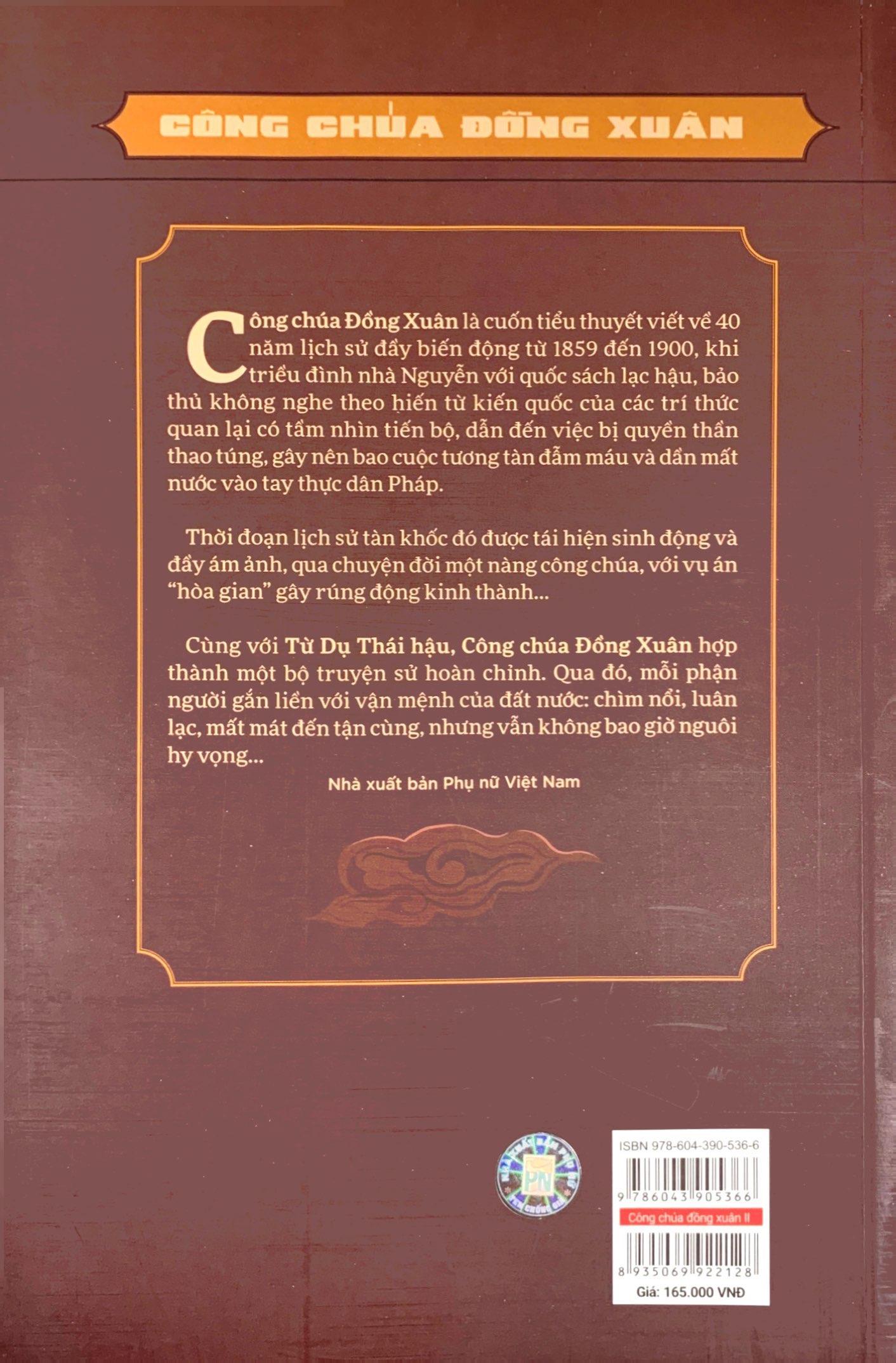 Mua tại TiktokCông chúa Đồng Xuân có thể được xem là phần tiếp theo của Từ Dụ thái hậu, cùng với Từ Dụ thái hậu hợp thành bộ tiểu thuyết lịch sử đầy đủ về triều Nguyễn. Nếu Từ Dụ thái hậu là thời thịnh Nguyễn (trải 30 năm, từ Gia Long đầu triều đến đầu thời Tự Đức), thì Công chúa Đồng Xuân tái hiện khoảng 40 năm đầy biến động tang thương trải từ năm 1859 đến năm 1900. Đây là 1 cuốn tiểu thuyết đồ sộ 66 chương với hàng trăm nhân vật, đa phần là các nhân vật có thật trong lịch sử. Nhân vật Từ Dụ có cuộc đời trải dài suốt triều Nguyễn, trong Công chúa Đồng Xuân vẫn là một nhân vật mang tính “nền tảng”. Khác với Từ Dụ thái hậu đặc tả chuyện “cung đấu”, chuyện quân thần thời thịnh trị; Công chúa Đồng Xuân theo dòng lịch sử kể lại những chính biến kinh hoàng, với xương sống là việc thực dân Pháp dần chiếm nước ta, biến nước ta thành 1 nước bị đô hộ, triều đình nhà Nguyễn mất dần quyền lực và trở thành con rối trong tay quyền thần, Pháp súy. Khá rõ ràng và kiên quyết, không ít đau tiếc ngậm ngùi, tiểu thuyết đưa ra quan điểm của tác giả về một sự “lỡ vận” của đất nước, khi quốc sách sai lầm, triều đình do dự quá lâu ko nghe theo hiến từ kiến quốc của các trí thức quan lại có tầm nhìn tiến bộ (về việc canh tân đất nước, củng cố quốc phòng, mở rộng giao thương, hòa hoãn để hạn chế thương vong chiến ). Quốc sách cố chấp và bạc nhược đã khiến các vua Nguyễn dần đi vào ngõ cụt, cắt đất dâng dần cho Pháp, chịu nhiều chiến phí; nhiều cuộc nổi loạn và binh biến diễn ra liên miên, đặc biệt là xung đột với dân Đạo, làm rối ren và suy kiệt đất nước. Có thể nói qua tiểu thuyết Công chúa Đồng Xuân, người đọc có dịp nhìn lại đầy đủ và thấu đáo sử Việt thời đầu Pháp thuộc, từ đó nhìn thời hiện đại một cách “biện chứng” hơn.