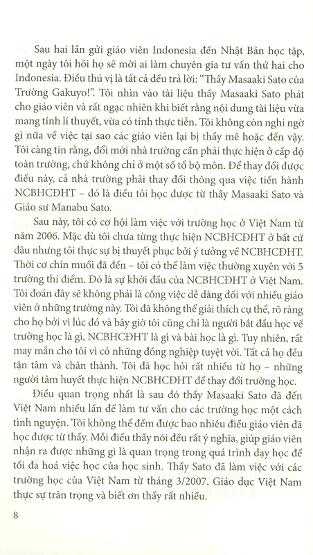 Cuốn sách này là sự kết hợp từ một cuốn sách của Giáo sư Manabu Sato và hai chương sách của thầy Masaaki Sato. Cuốn sách đầu tiên “Đổi mới nhà trường: Thiết kế và