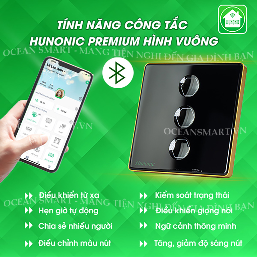 Trong tháng 9 này, Hunonic tiếp tục cho ra mắt công tắc vuông Premium viền vàng sang trọng, sử dụng công nghệ Bluetooth Mesh.
