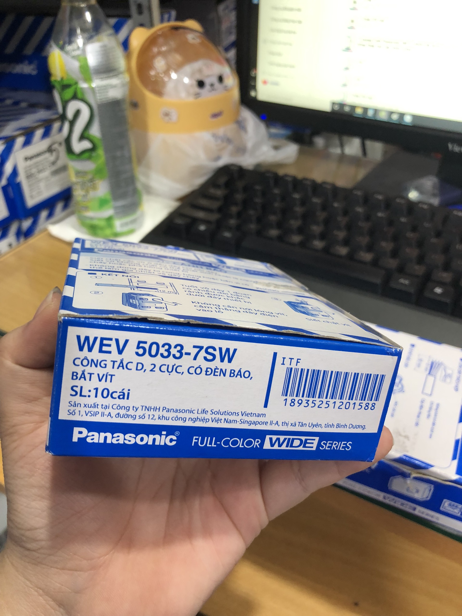 ✨Công tắc D Panasonic WEV-5033-7SW (2 cực) dòng Wide có đèn báo - Hàng chính hãng