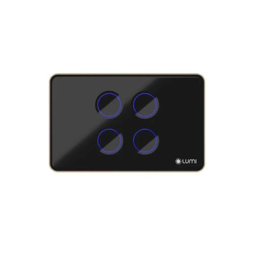 CÔNG TẮC CẢM ỨNG THÔNG MINH LUMI | Hình Vuông, Kính Lõm, Màu Đen, Viền Bo, Vàng | Smarthome Phú Thái