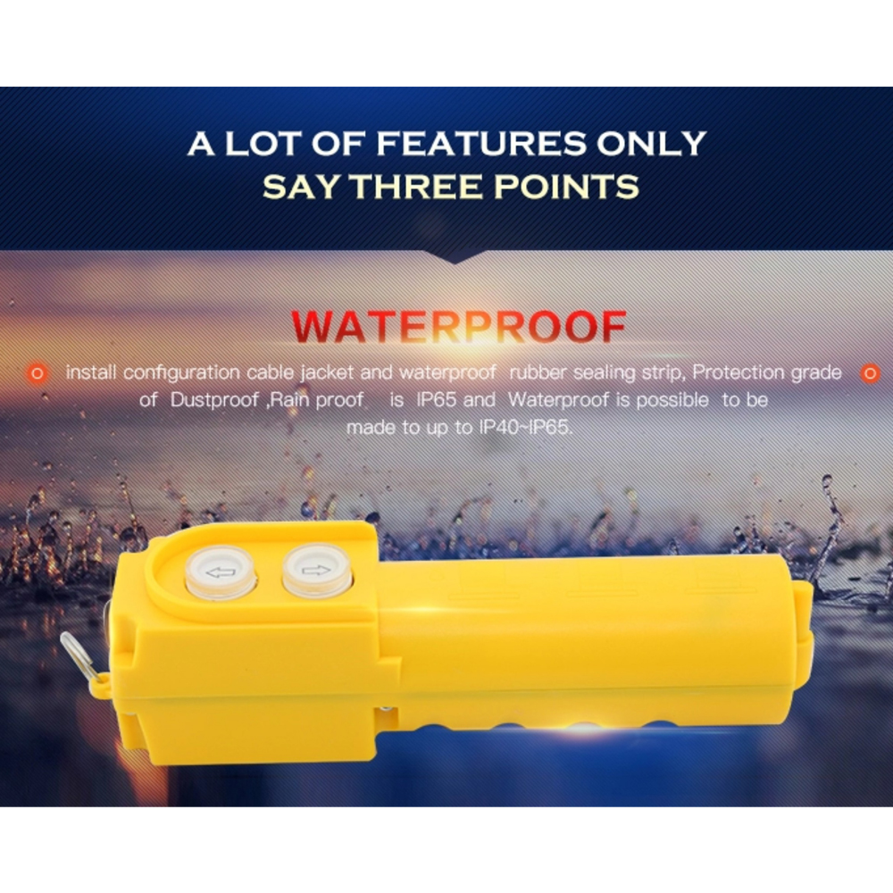 – Nút bấm (Up/Down) Tời điện có cách dùng cực dễ, khi nào muốn cho vật kéo lên, ấn nút up, muốn kéo vật xuống, nhấn nút lên. Nếu bạn muốn vật nâng hay hạ xuống một độ cao nhất định, hãy nhấn nút đó 2 lần. Ví dụ, muốn nâng từ đất lên độ cao A thay vì đích là B thì khi vật gần tới điểm A, ta ấn 2 lần nút nâng vậy là được và ngược lại với cách hạ cũng tương tự