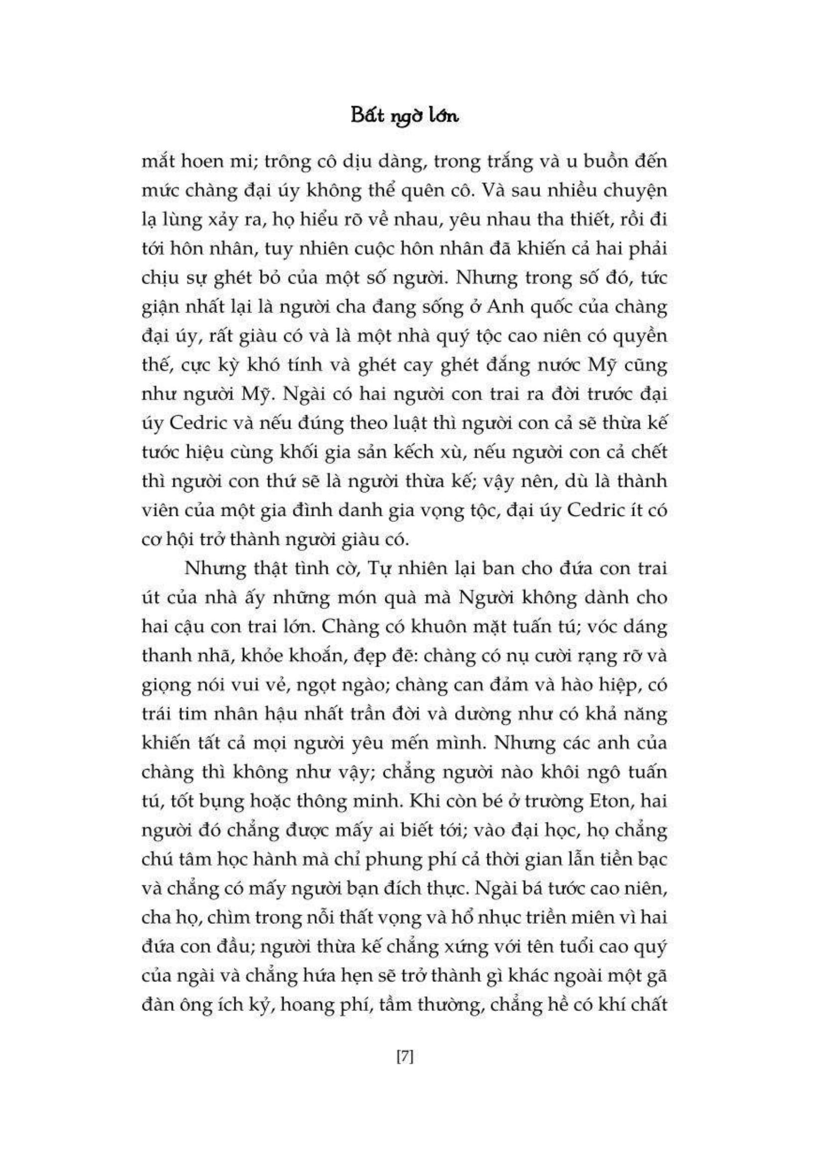 Chào tạm biệt những người bạn thuộc tầng lớp lao động của m.ình, Cedric háo hức băng qua đại dương đoàn tụ cùng ông nội, hoàn toàn không ngờ tới người ông cậu kính yêu và sùng bái thực chất lại là một nhà quý tộc cay nghiệt, ích kỷ, nóng tính và hoàn toàn không hề có ý định sẽ dành chút tình cảm nào cho cậu…