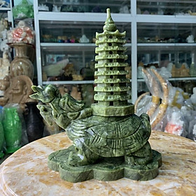 Mua tại TiktokMÔ TẢ SẢN PHẨM Kích thước: cao 22cm, ngang 20cm, nặng 2.2kg Chất liệu: đá Ngọc Ấn Độ Ý NGHĨA SẢN PHẨM Tượng Long Quy (Rùa Đầu Rồng) Cõng Tháp Văn Xương Cỡ Đại là biểu tượng của Chùa Chiền, trí tuệ và uy lực gia trì của Phật pháp, rất lợi cho học sinh học hành đỗ đạt, tiến lên trong con đường công danh sự nghiệp dựa theo thuyết Phong Thủy.