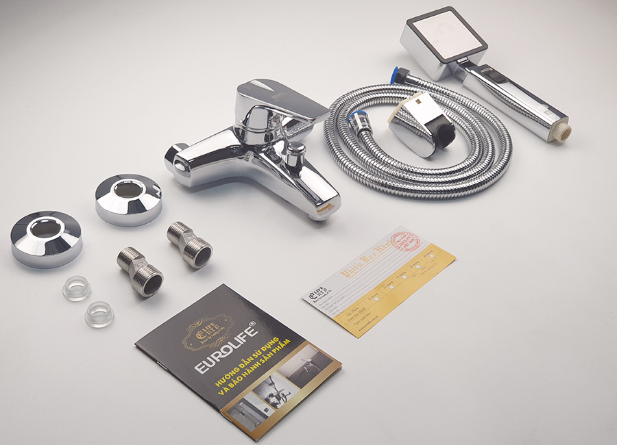 Sản phẩm đi kèm bộ tay dây sen siêu tăng áp Eurolife EL-105SH.