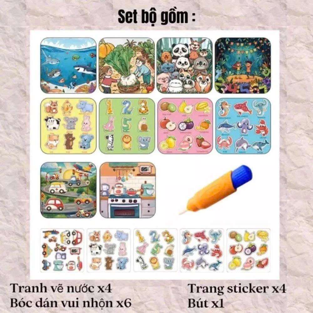 Cuốn sổ ma thuật bóc dán vẽ tranh bằng nước thông minh cho bé phát triển tư duy trí não