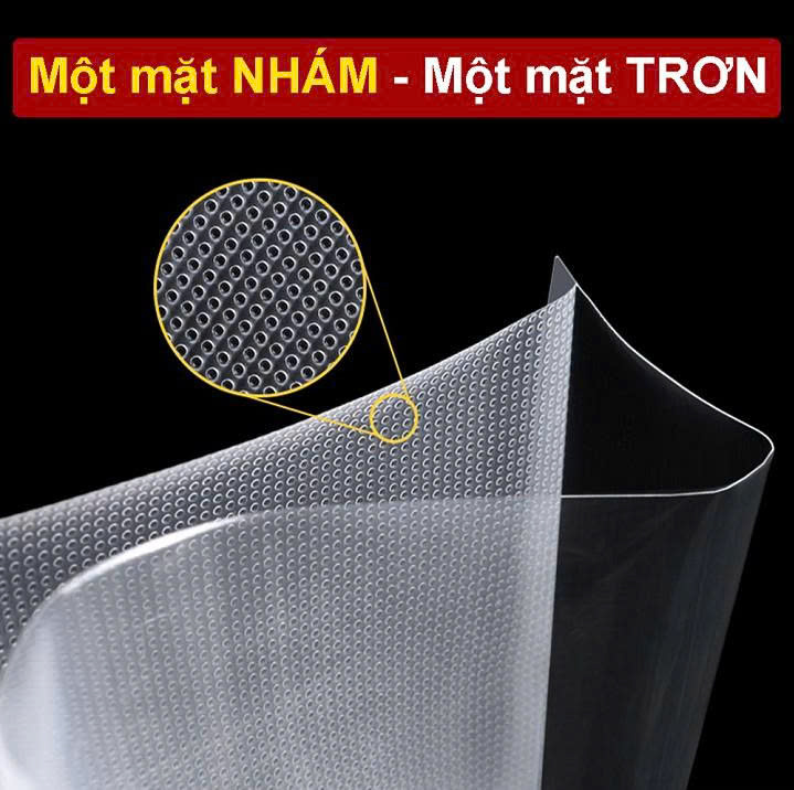 - Cuộn túi hút chân không một mặt trơn và một mặt nhám có đường gân này chỉ được sử dụng cho các dòng máy hút chân không gia đình