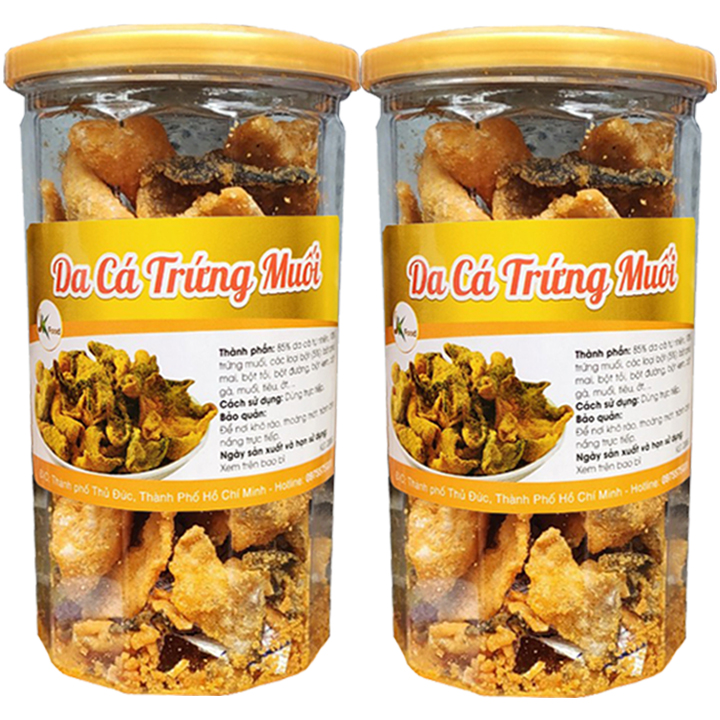 Mua tại TiktokDa Cá Trứng Muối - Vị Singapore Da cá được sấy giòn rụm được cắt miếng vừa ăn. Lớp trứng muối bao phủ bên ngoài mặn mặn, ngọt ngọt vừa bùi béo, vừa đậm đà. Thiết kế bao bì sang trọng và bắt mắt có thể dùng cho gia đình hoặc làm quà biếu, tặng. Da cá được ướp gia vị nên khi ăn không bị ngấy hay có vị tanh nữa. Ngoài vị giòn rụm gây cảm giác thích thú, hương vị thơm ngon thì da cá sấy giòn còn có tác dụng rất tốt đối với sức khỏe cho mọi đối tượng. Xuất xứ : Việt Nam. Ngày sản xuất: In trên bao bì Trọng lượng: In trên bao bì Sản phẩm có giấy chứng nhận an toàn vệ sinh thực phẩm. Hướng dẫn sử dụng: Dùng trực tiếp, không cần chế biến. Không sử dụng sản phẩm đã hết hạn.