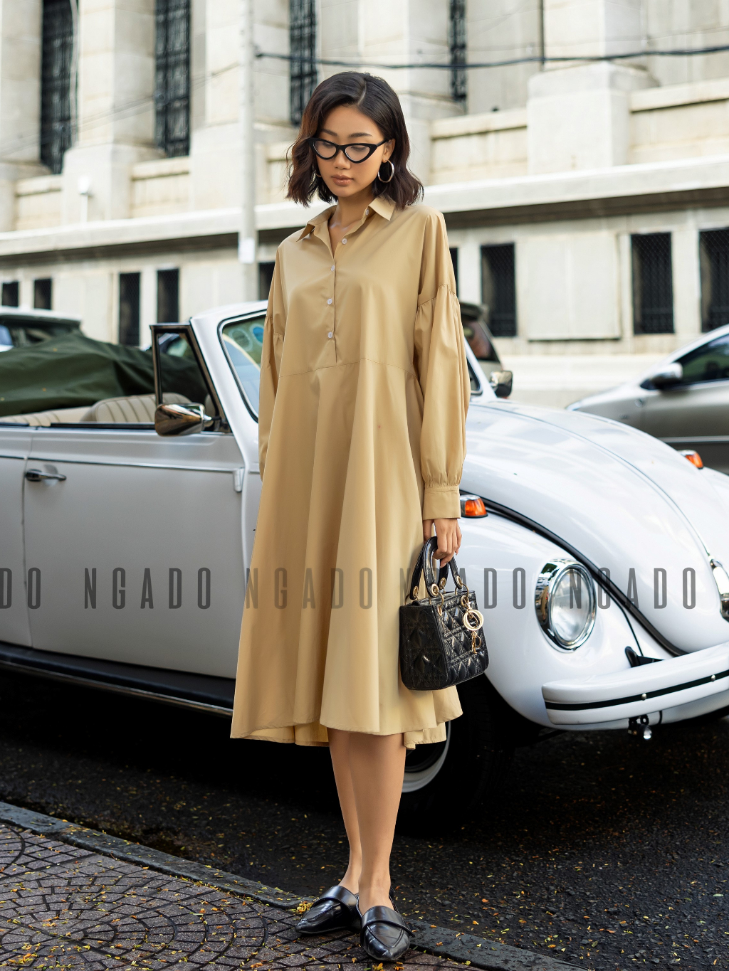 ✨Đầm sơ mi nâu dài tay NGADO , đầm nữ , Đầm suông , Đầm phom rộng nữ thiết kế