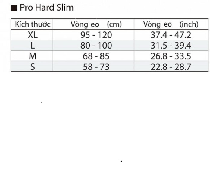 Sản phẩm được cung cấp với 4 kích cỡ S, M, L, XL, XXL phù hợp với kích thước vòng lưng khác nhau. Dựa theo bảng dưới đây sẽ giúp bạn chọn size phù hợp