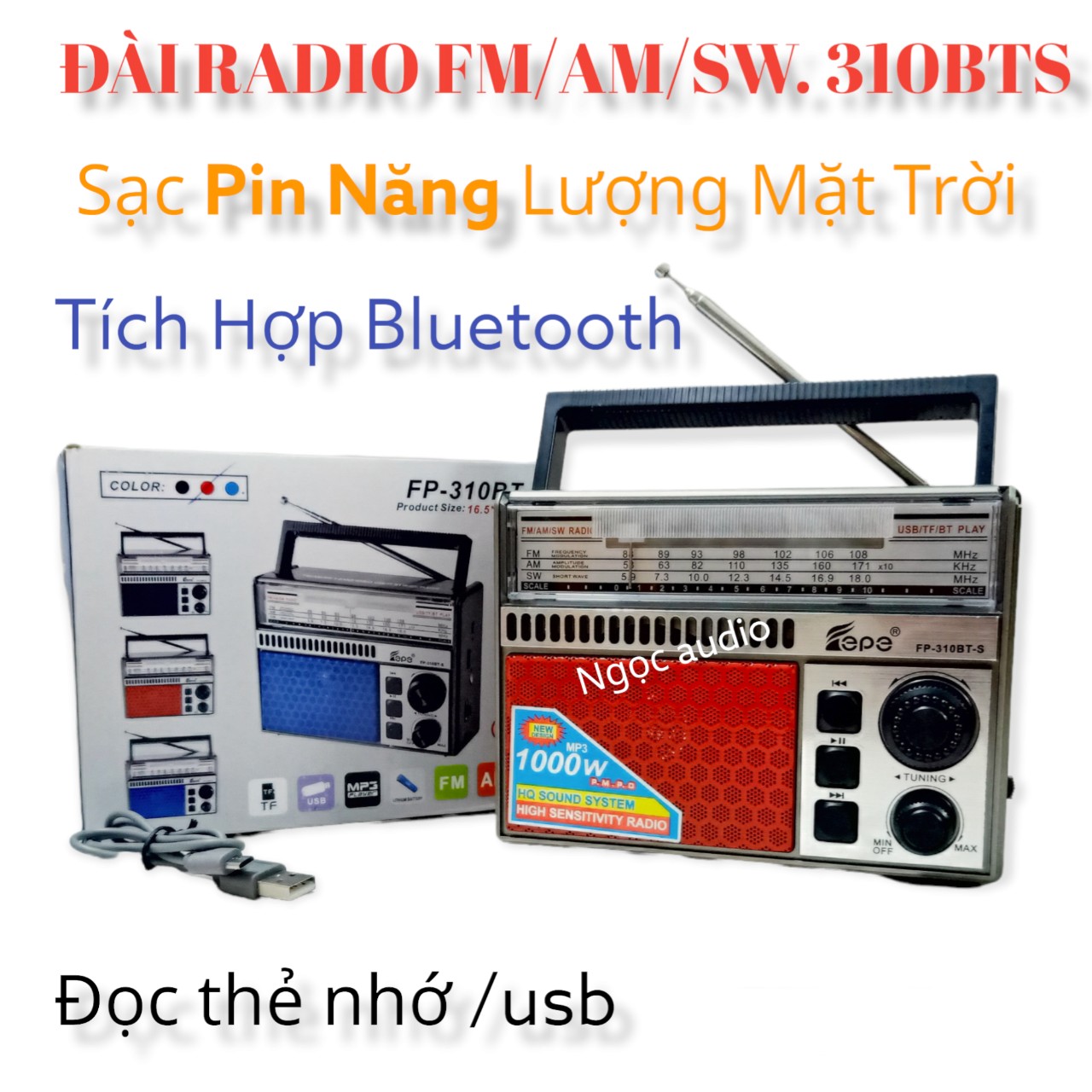 Đài radio FM pin năng lượng mặt trời Fepe 310BT bắt sóng SW - AM - FM bluetooth, USB , Thẻ nhớ TF.