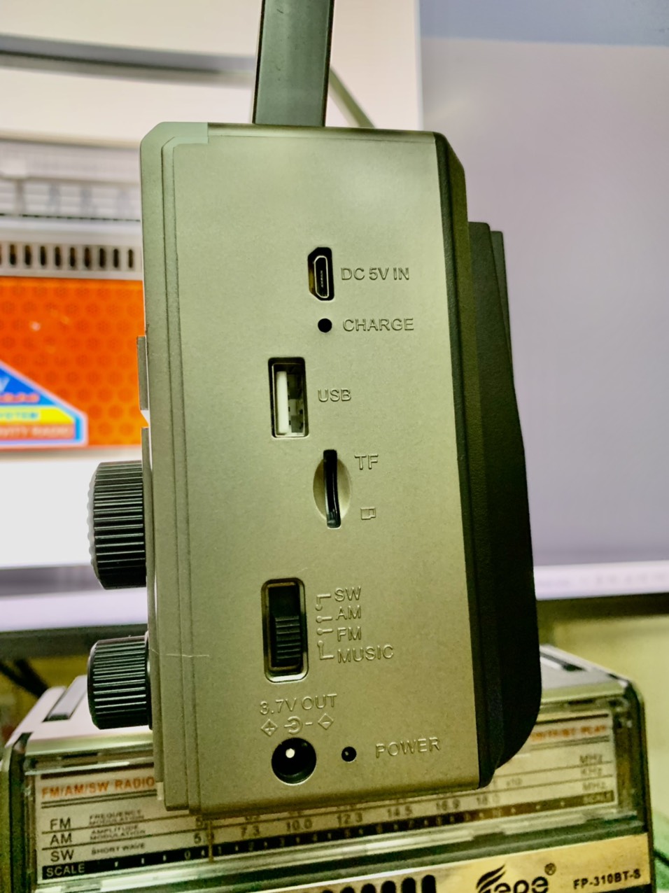 - 3 Băng FM , AM , SW - Bluetooth 5.0 , Phát nhạc từ USB hoặc thẻ nhớ TF Card - Sử dụng điện trực tiếp 220V hoặc pin sạc dung lượng lớn kèm