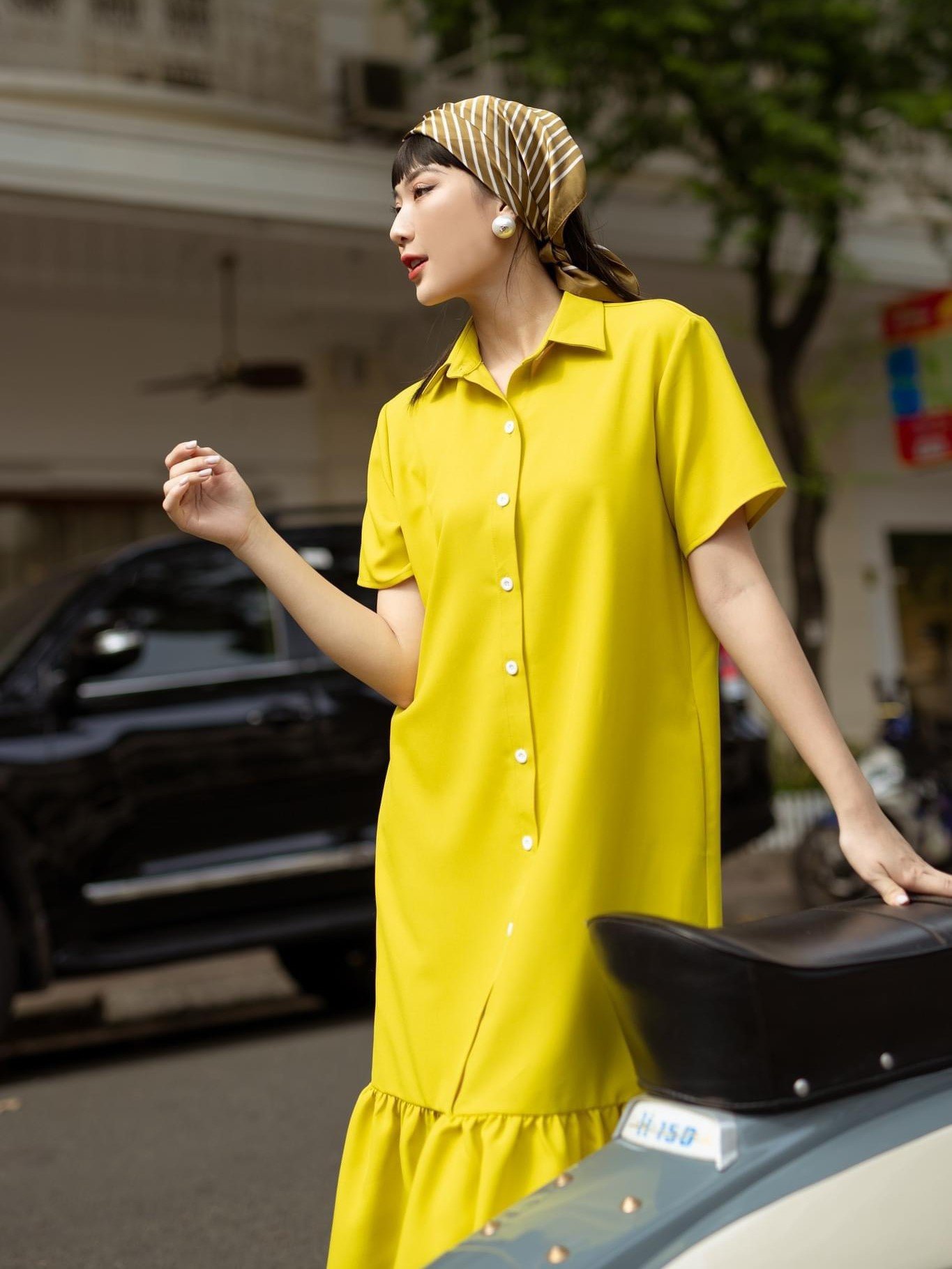 ✨Đầm babydoll vàng chanh ngắn tay NGADO