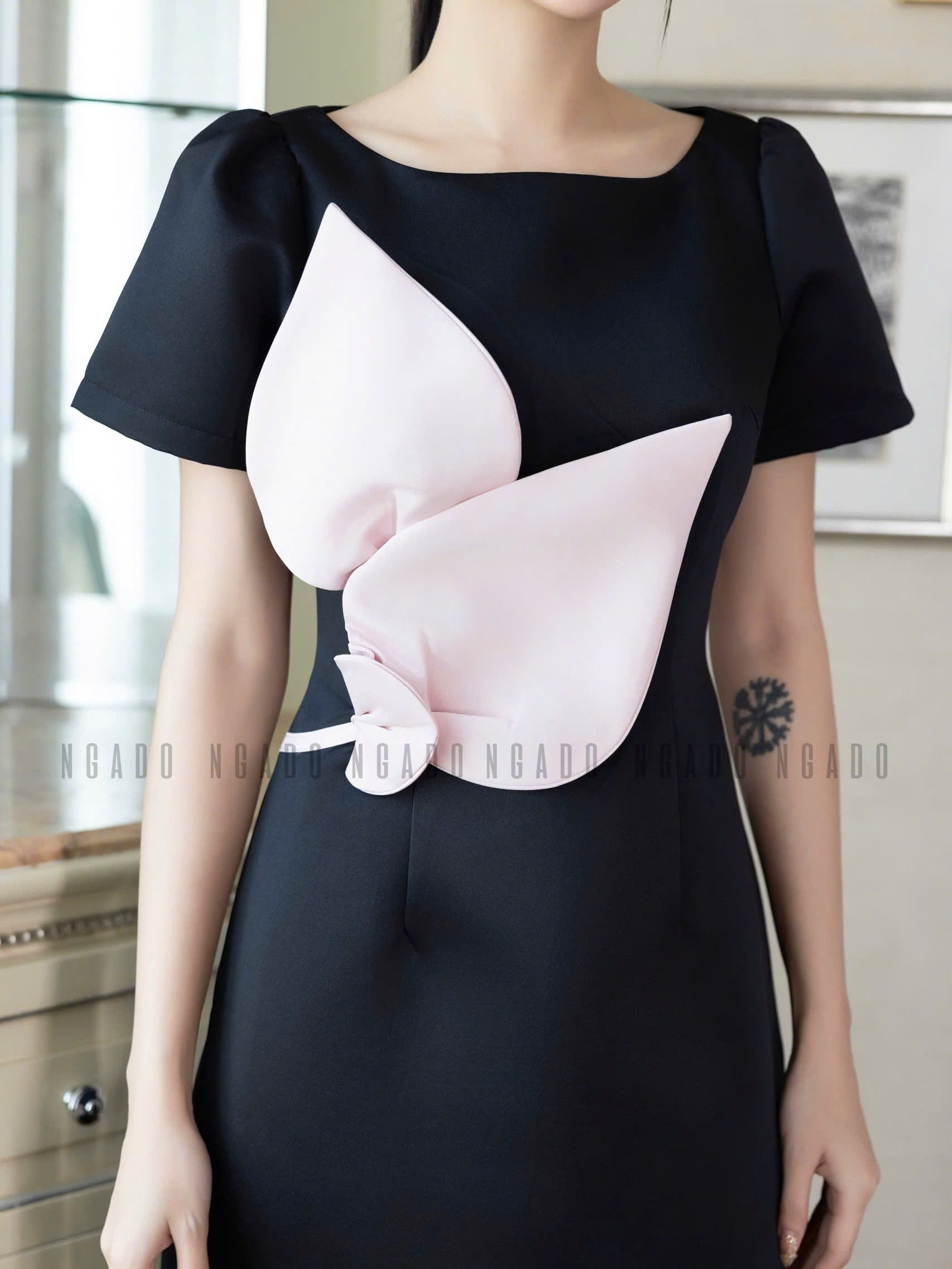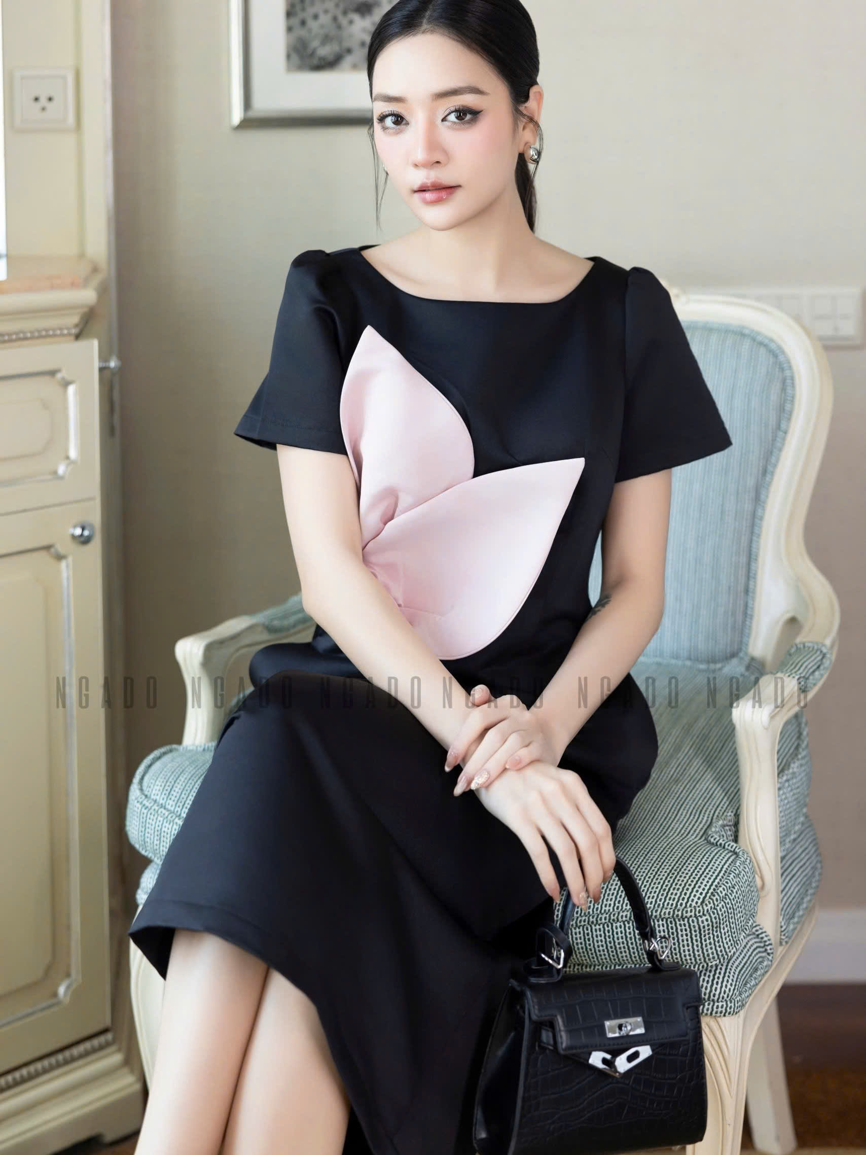 ✨Đầm đen cổ thuyền phối hoa NGADO , đầm dự tiệc , đầm bút chì