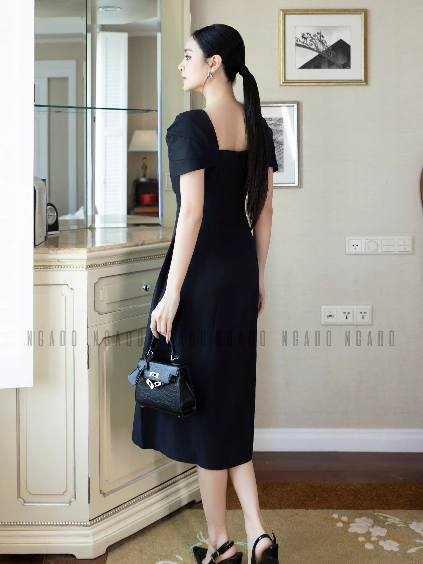 ღ THÔNG TIN SẢN PHẨM: Tên sản phẩm: Đầm đen cổ vuông Màu sắc: Đen Chất liệu: Chất gấm trơn dày Chi tiết sản phẩm: không lót, không túi. Thông