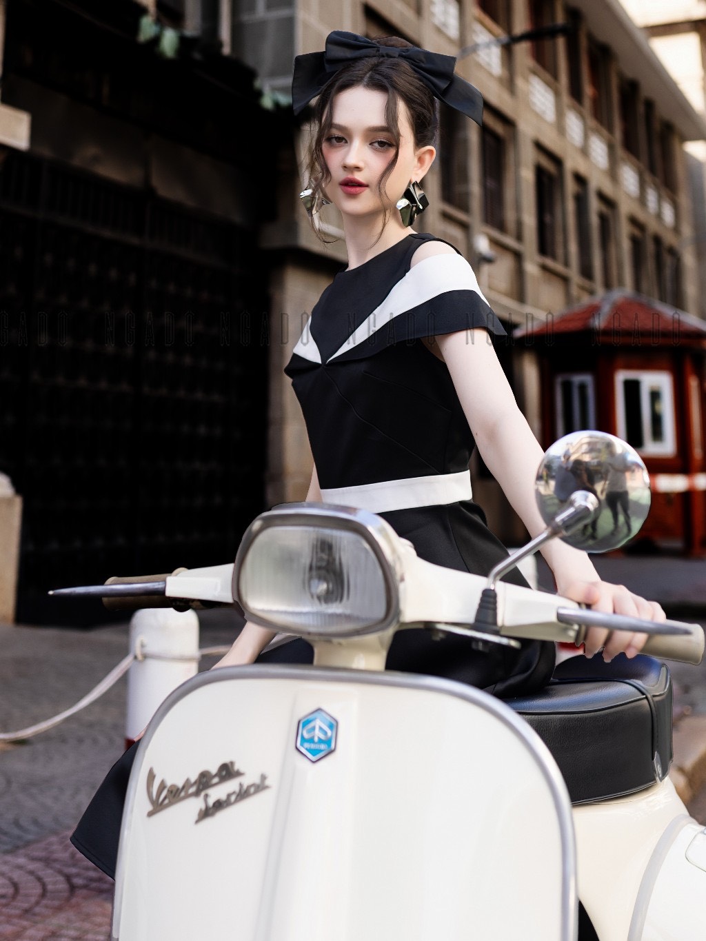MÃ DP236 + DP237 - đầm đen phối trắng và áo vest đen | gọi DT ZALO 0766,522,104 | Váy Đầm Trung Niên