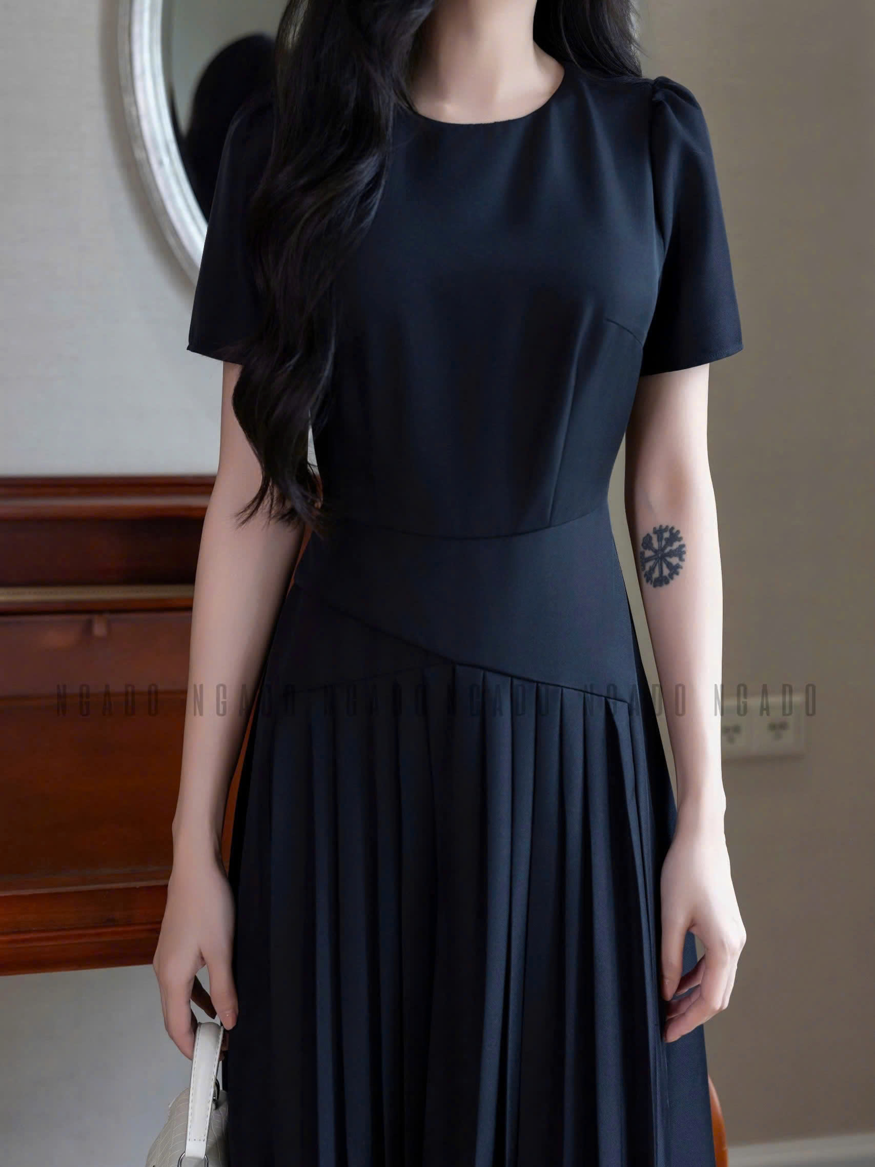 ✨Đầm đen xếp ly cổ tròn NGADO , đầm thiết kế , đầm dự tiệc, công sở