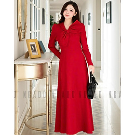 ✨Đầm đỏ cổ phối nơ NGADO , đầm dự tiệc dáng dài