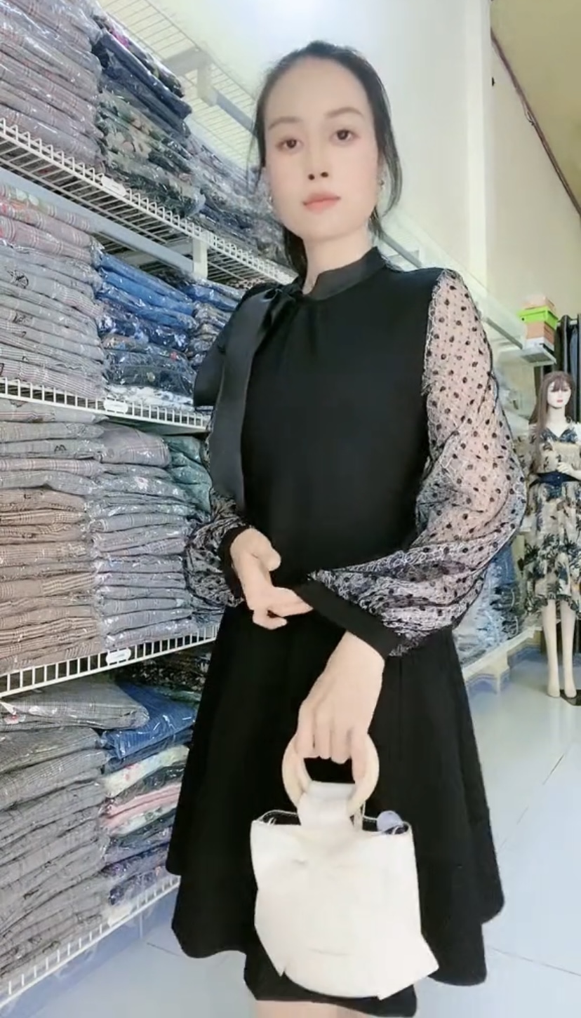 Đầm xếp ly voan lụa phối ren cao cấp Mã: DLBG010 Màu: Đen Chất liệu: Voan lụa, ren thêu loại 1 bền chắc Số đo vòng1/vòng2(cm): 80/70