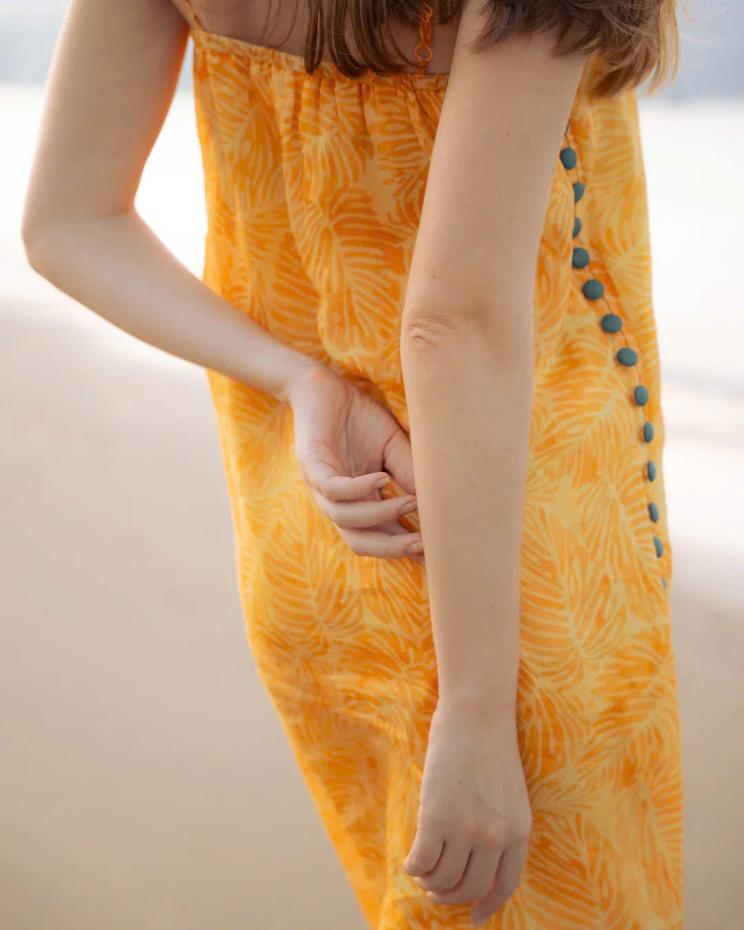 ✨Đầm Hai Dây Suông, Đầm xẻ tà, Đầm Vàng Linen Kim Diệp thời trang thiết kế Hity