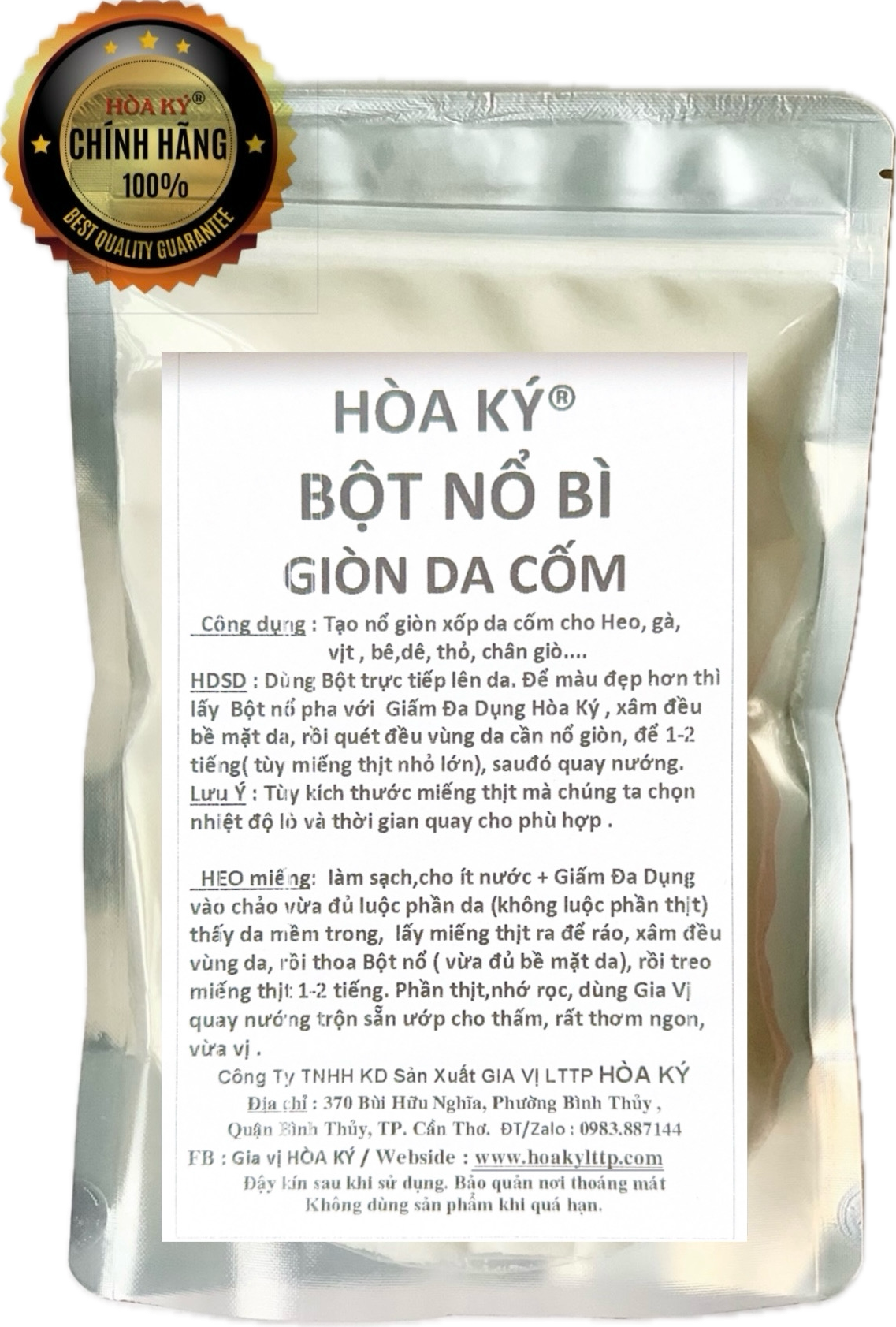 Quay da bóng giòn màu đẹp thì lấy Bột nổ pha với Giấm Đa Dụng Hòa Ký ; xâm đều bề mặt da, rồi quét đều vùng da cần nổ giòn, để 1– 2 tiếng hong gió ( tùy miếng thịt nhỏ lớn), sau đó quay nướng.