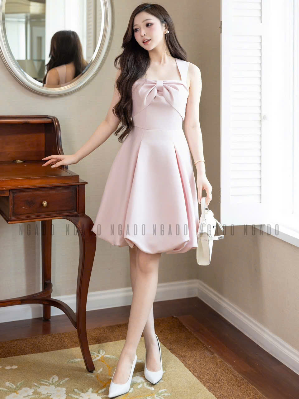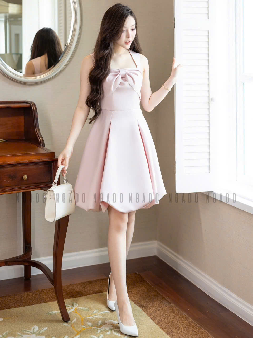 ✨Đầm hồng cổ phối nơ NGADO , đầm ngắn , đầm dự tiệc , dạo phố